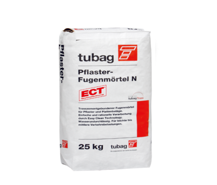 Водонепроницаемый цементный раствор с трассом Tubag для заполнения швов натурального камня, тротуарной брусчатки, плитах бетонных, под легкие и средние нагрузки, подходит для движения легкового транспорта и пешеходов.