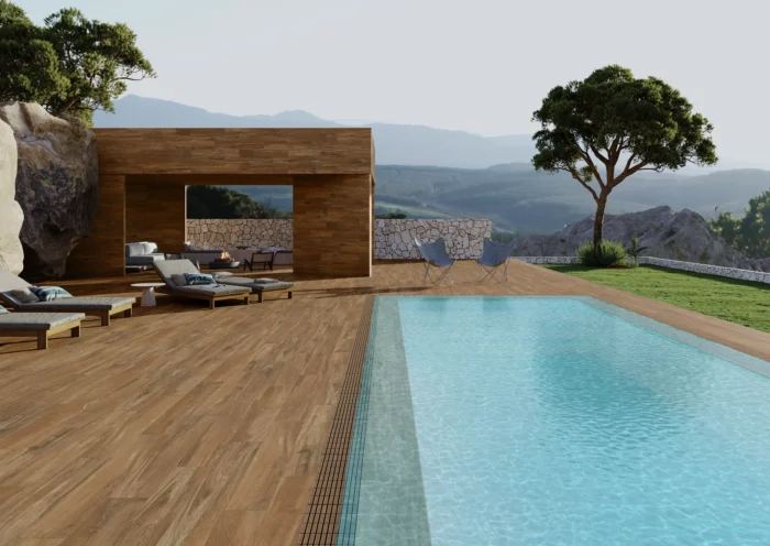 Керамічна плитка для підлоги з ефектом дерева дуба. Завдяки розробкам струменевого друку з високою деталізацією він пропонує елегантний і дуже реалістичний зовнішній і внутрішній вигляд.